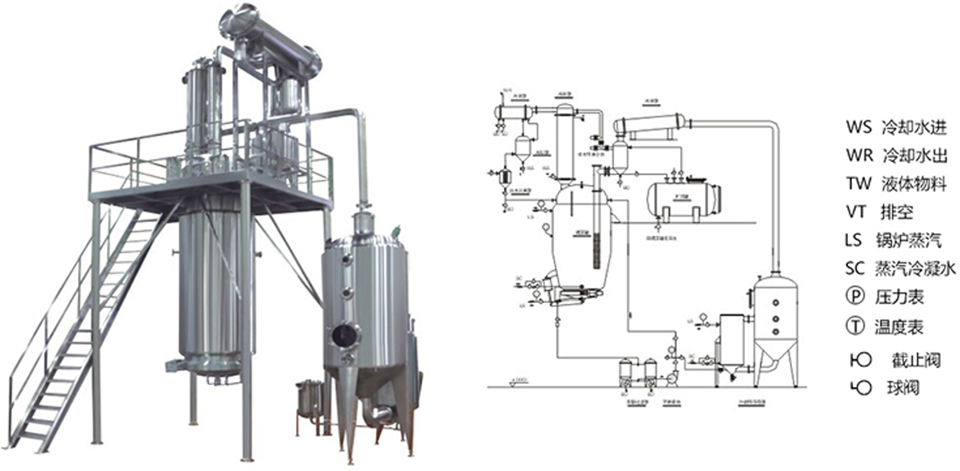 蒸汽,通過(guò)蒸發(fā)器上升管送入提取罐作提取的熱源和溶液,維持提取罐內(nèi)沸騰。