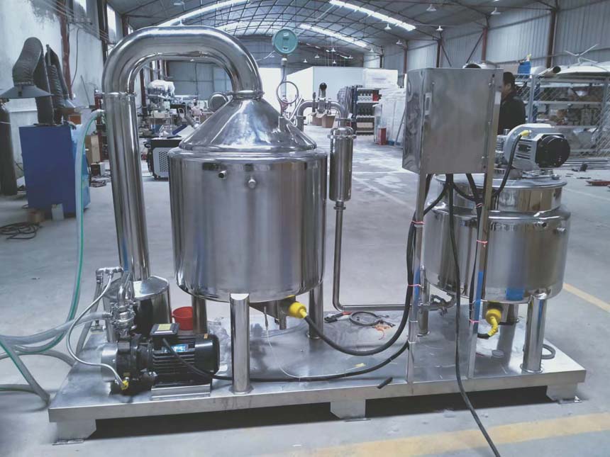 1 .設(shè)備由預(yù)熱罐、過濾器、濃縮罐、冷凝器、回收罐、真空泵部件組成,結(jié)構(gòu)緊湊,占地面積小。